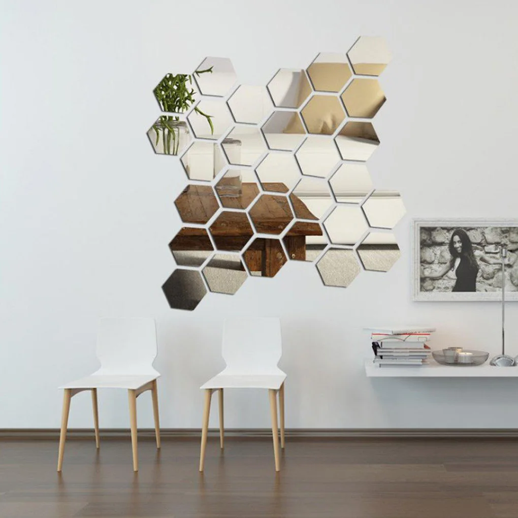 12pcs 3D Hexagon Acrylic Mirror Wall Stickers – DIY Home Décor