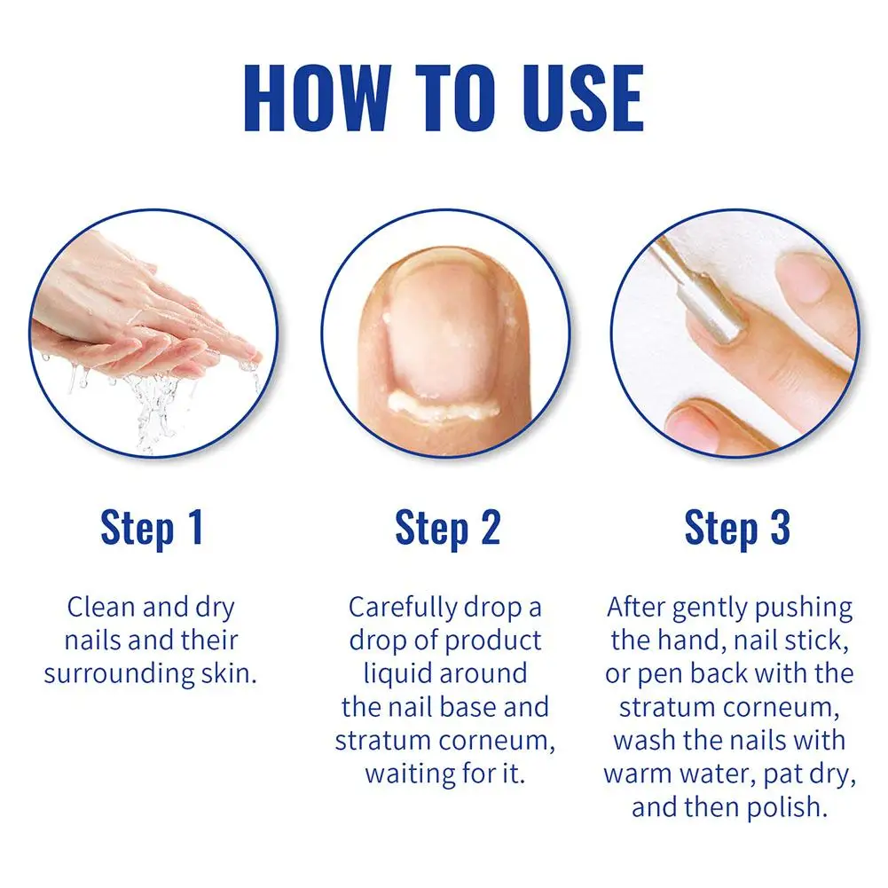 1️⃣ Apply: Squeeze a thin strip around the cuticle and under the tip of your nail.