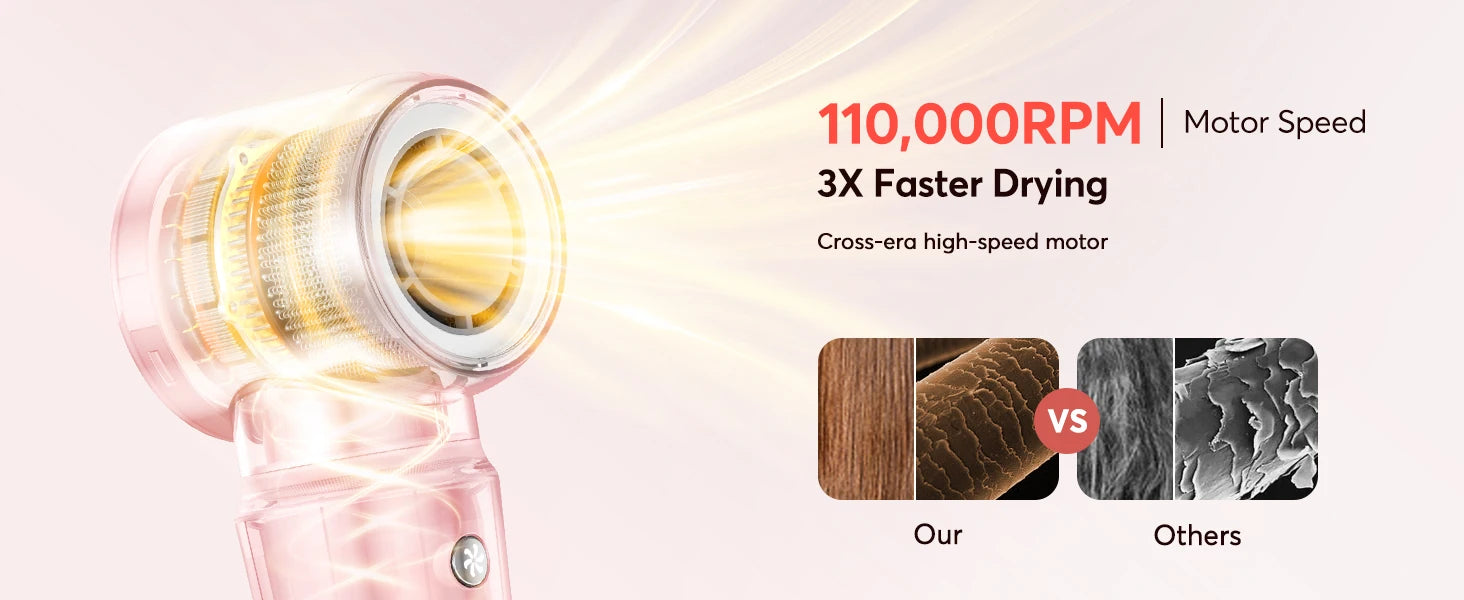 [High-Quality and Smart Temp Control,No More Heat Damage]: Built with imported motor bearings for a lifespan of up to 15 years, this device ensures durability and performance. Its advanced heating system delivers even airflow, while smart temperature control allows real-time adjustments to protect your hair. The low-noise design enhances your styling experience without disturbing your surroundings