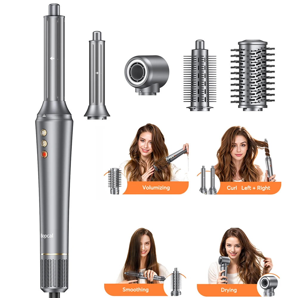[5-in-1 Hair Styler Simplifies Your Daily Routine]: Effortlessly switch styles and express your unique beauty with the Bopcal Multi-Styler, which features 5 attachments for drying, straightening, curling, smoothing, and volumizing. Its powerful 110,000 RPM brushless motor and 36m/s airflow reduce drying time by half while minimizing heat damage, allowing you to achieve stunning shine and strength with ease