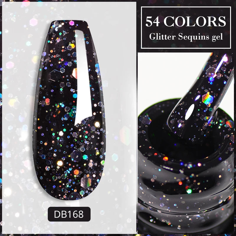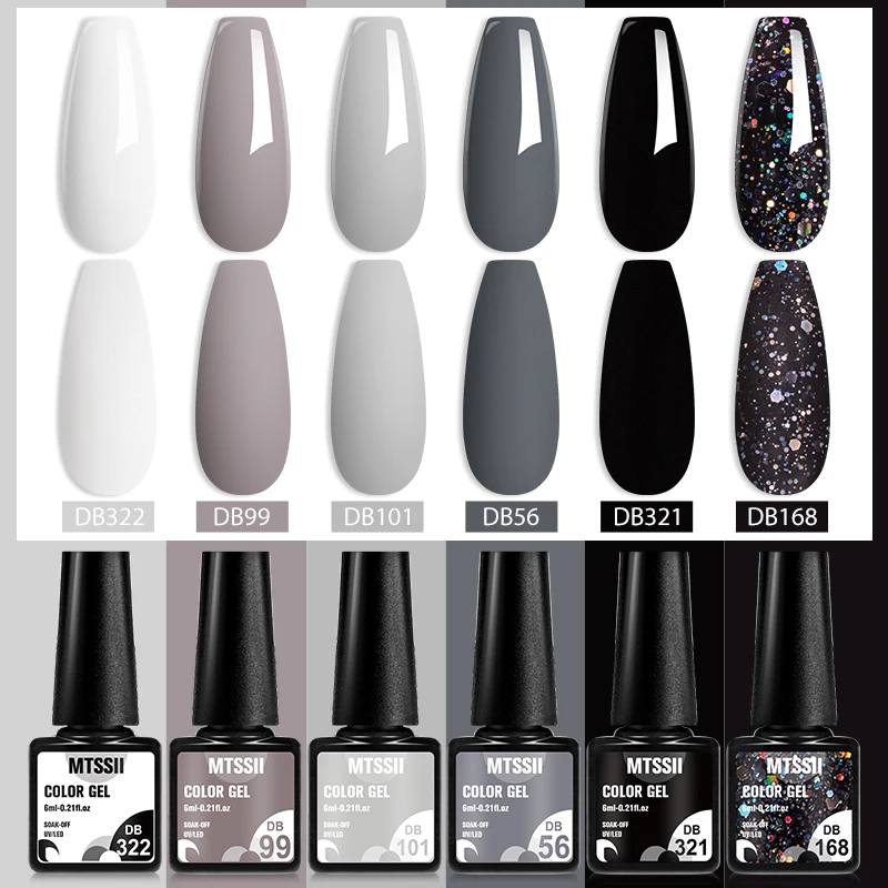 6Pcs Gray Gel Nail Polish Set - Moonlight Colors with Glitter, Semi-Permanent Varnish, Soak-Off UV Gel Manicure Base & Top Coat