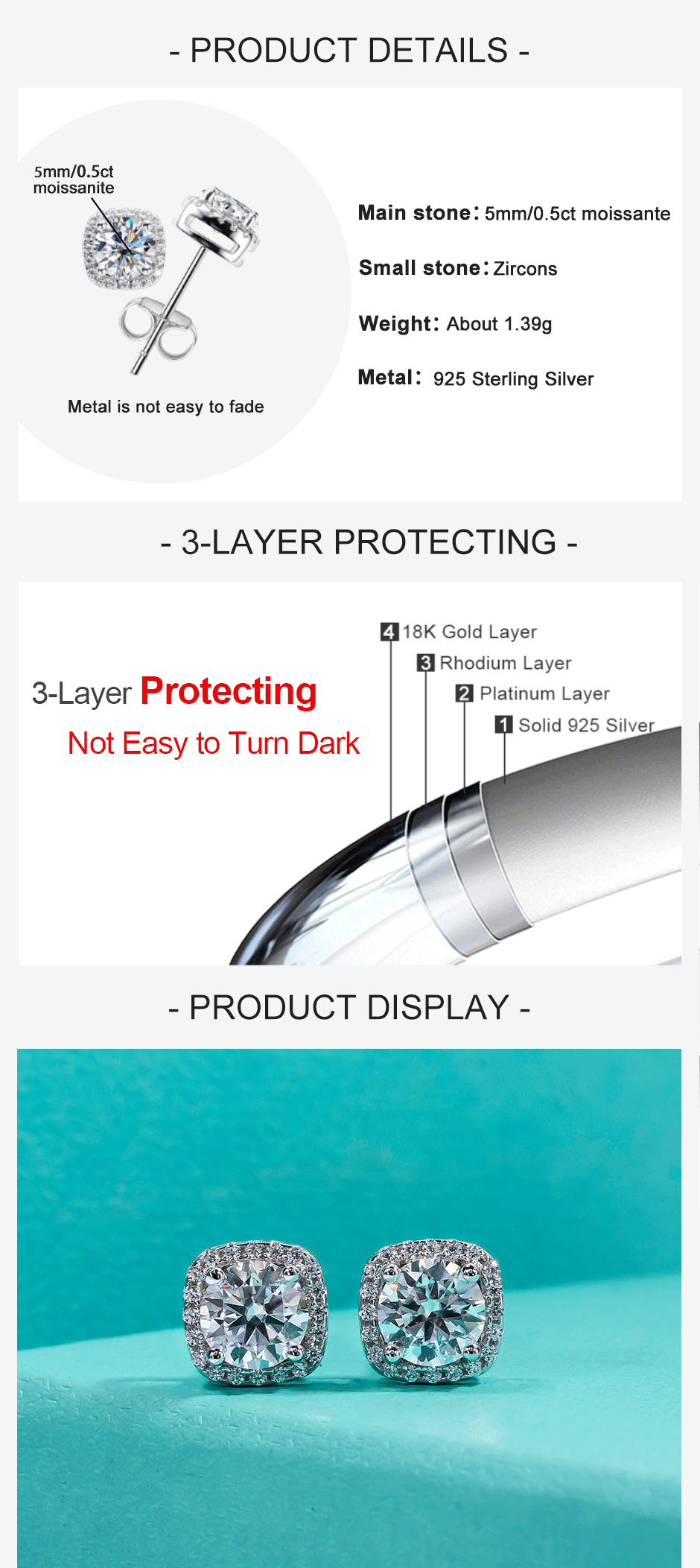 - Brilliant Moissanite Stones: Each earring features a 5mm, 1CT Moissanite diamond, renowned for its exceptional sparkle and brilliance, almost indistinguishable from diamonds.