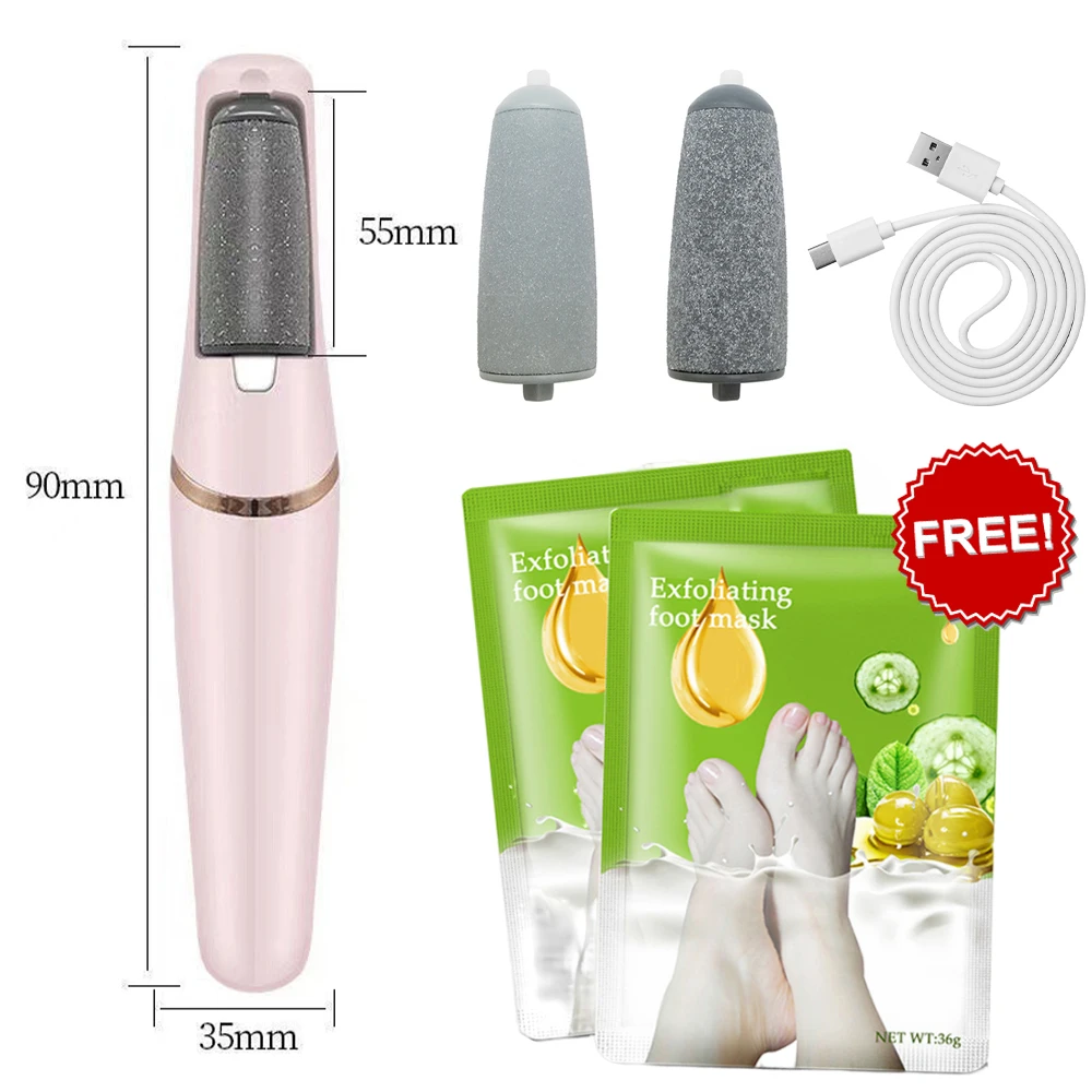 Professional Pedicure Set: This comprehensive kit includes an electric foot file, multiple grinding heads, and a USB cable—everything you need for a professional-grade foot care experience.
