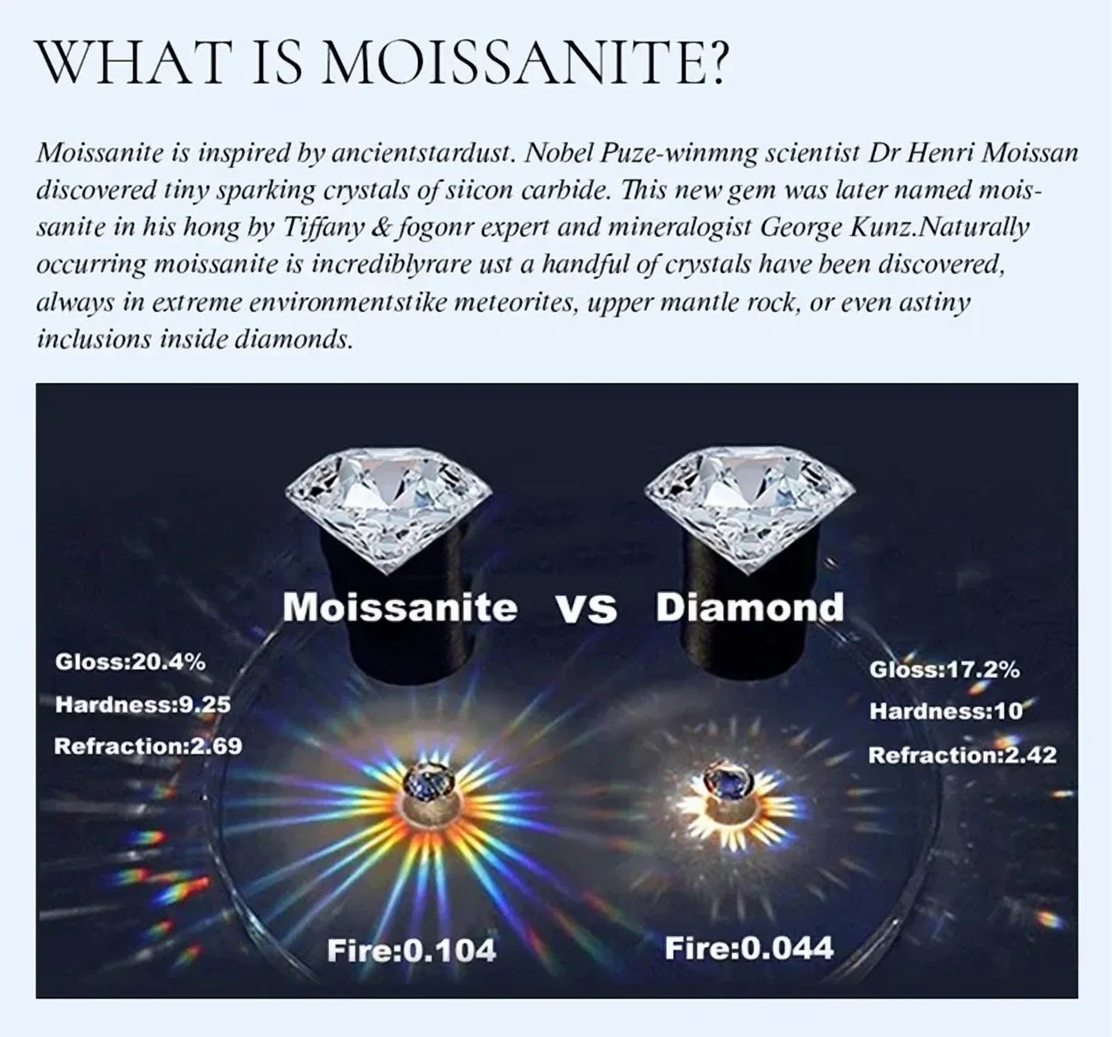 - Incredible Sparkle: The fire of Moissanite is more than 2.5 times that of diamonds, ensuring it shines brighter and captures more light.