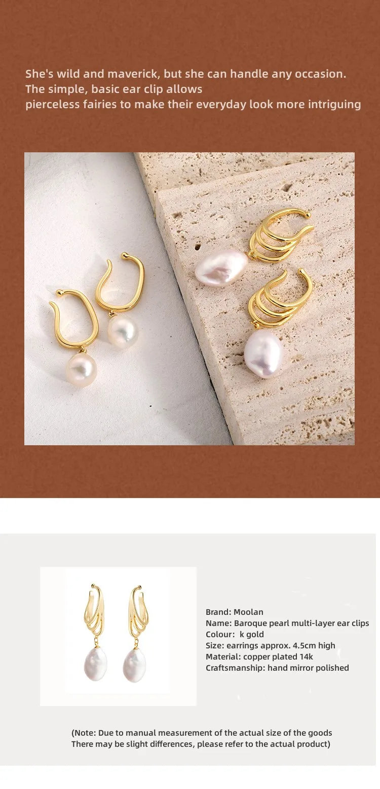 Moolan Jewel Baroque Pearl Earrings for Women Without Pierced Ears – Temperament Ear Clips Fashion Jewelry Gifts