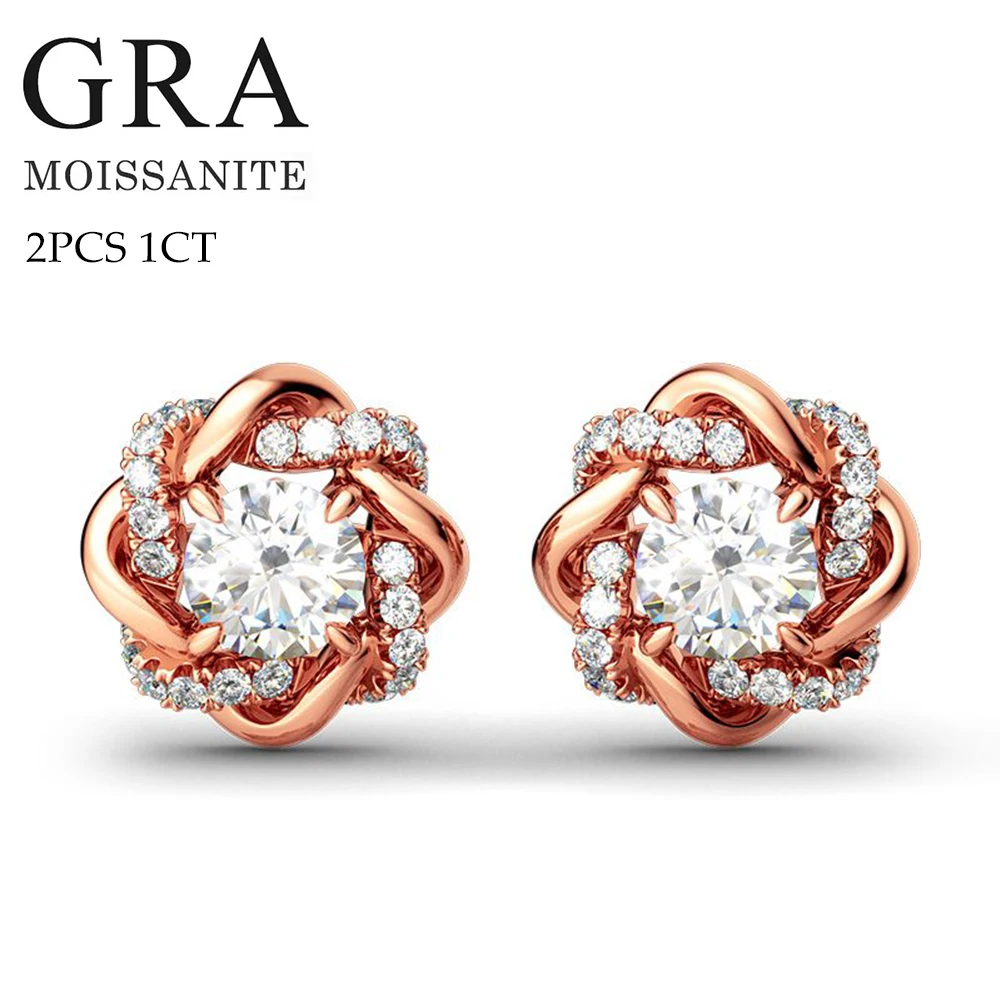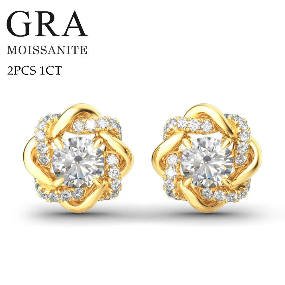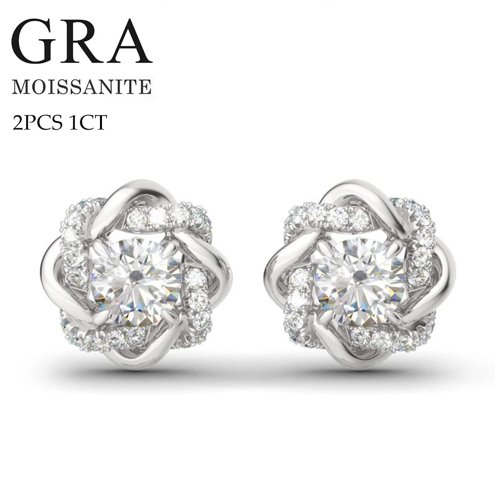 2PCS 1CT Moissanite 925 Sterling Silver Stud Earrings For Women with Moissanite GRA Certificate